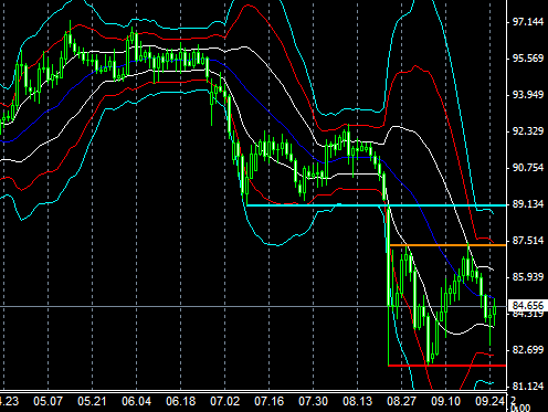 先週の前半は水平のオレンジラインが上値抵抗線として意識されたようですが、