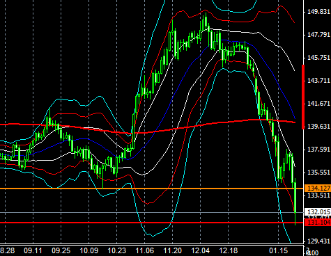更には、1時間足チャートでの赤色ラインを割ってくるようなら