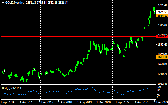 金(ゴールド)の月足チャート