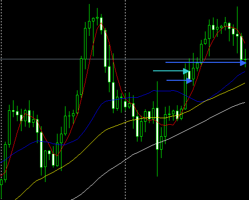 薄い青緑色矢印は、私こすぎによる独自ルール「こすぎ流早期エントリー」での